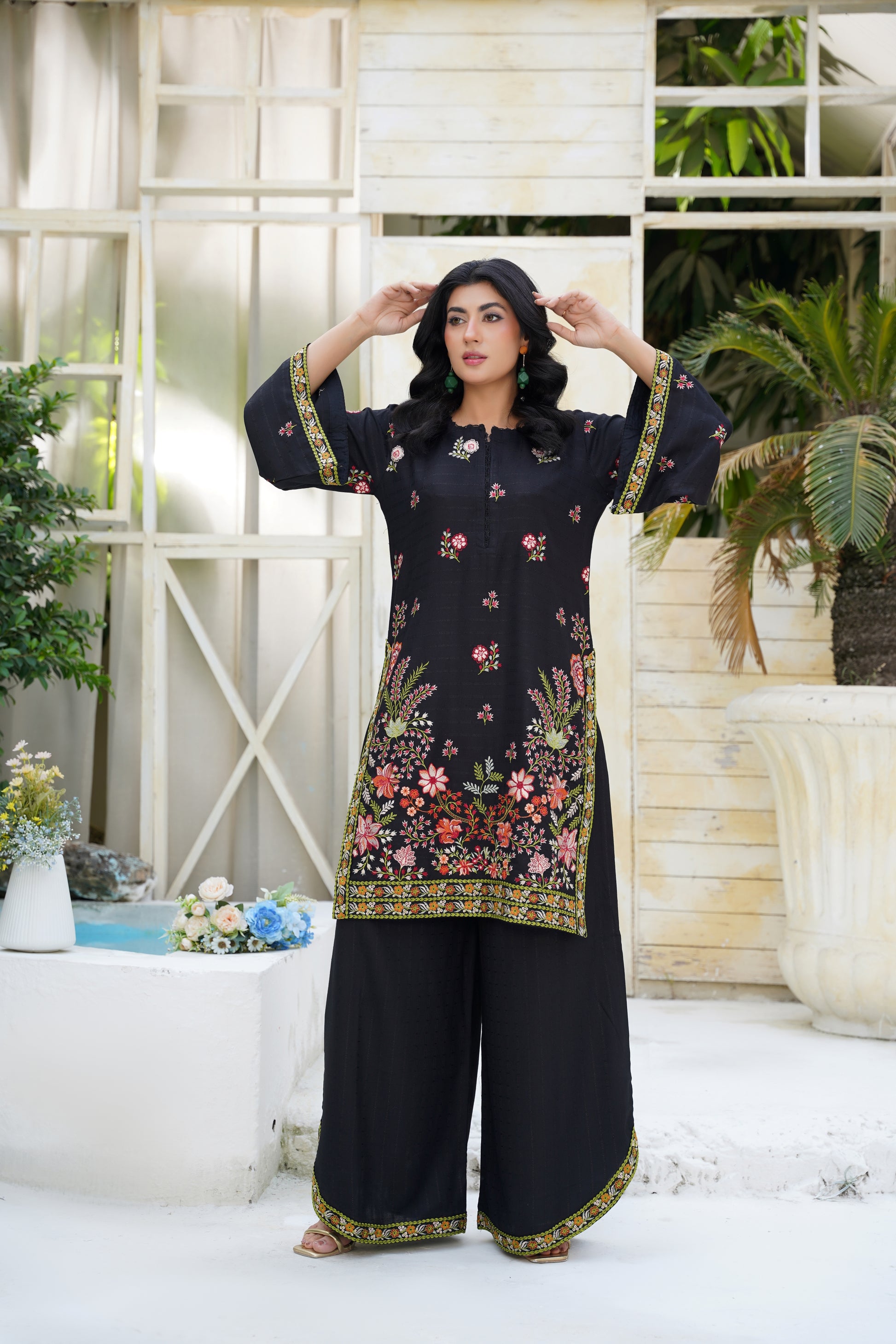 Midnight Blossom – Black Embroidered 2Pc Suit