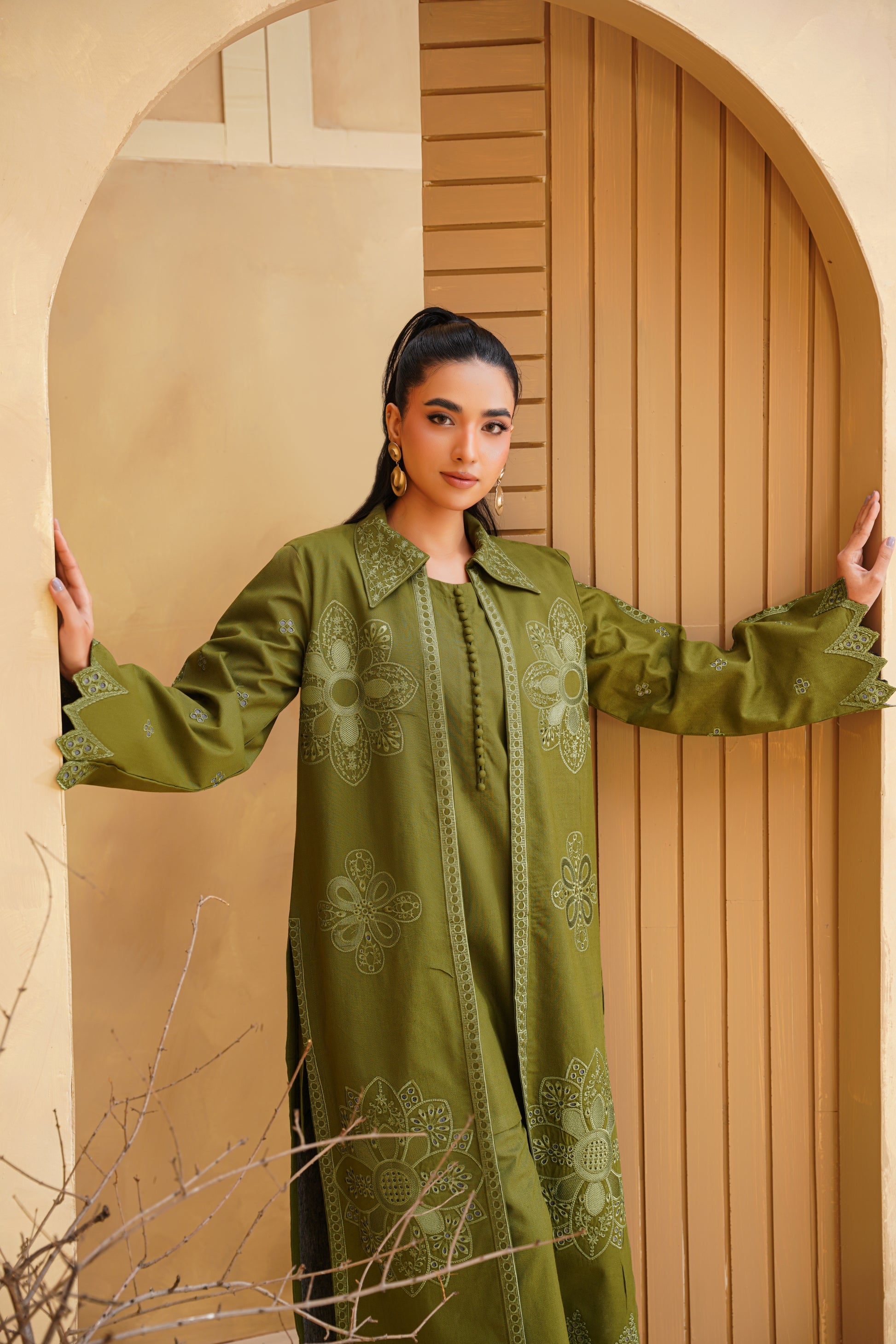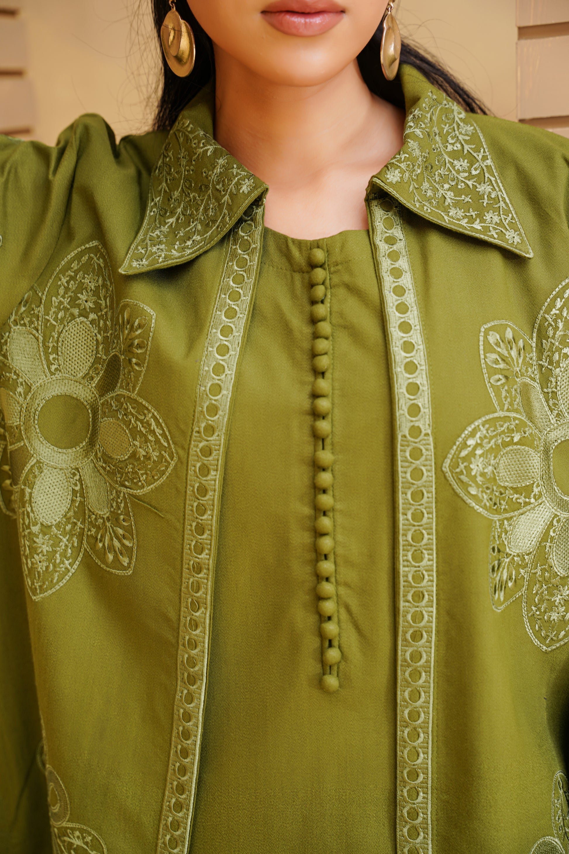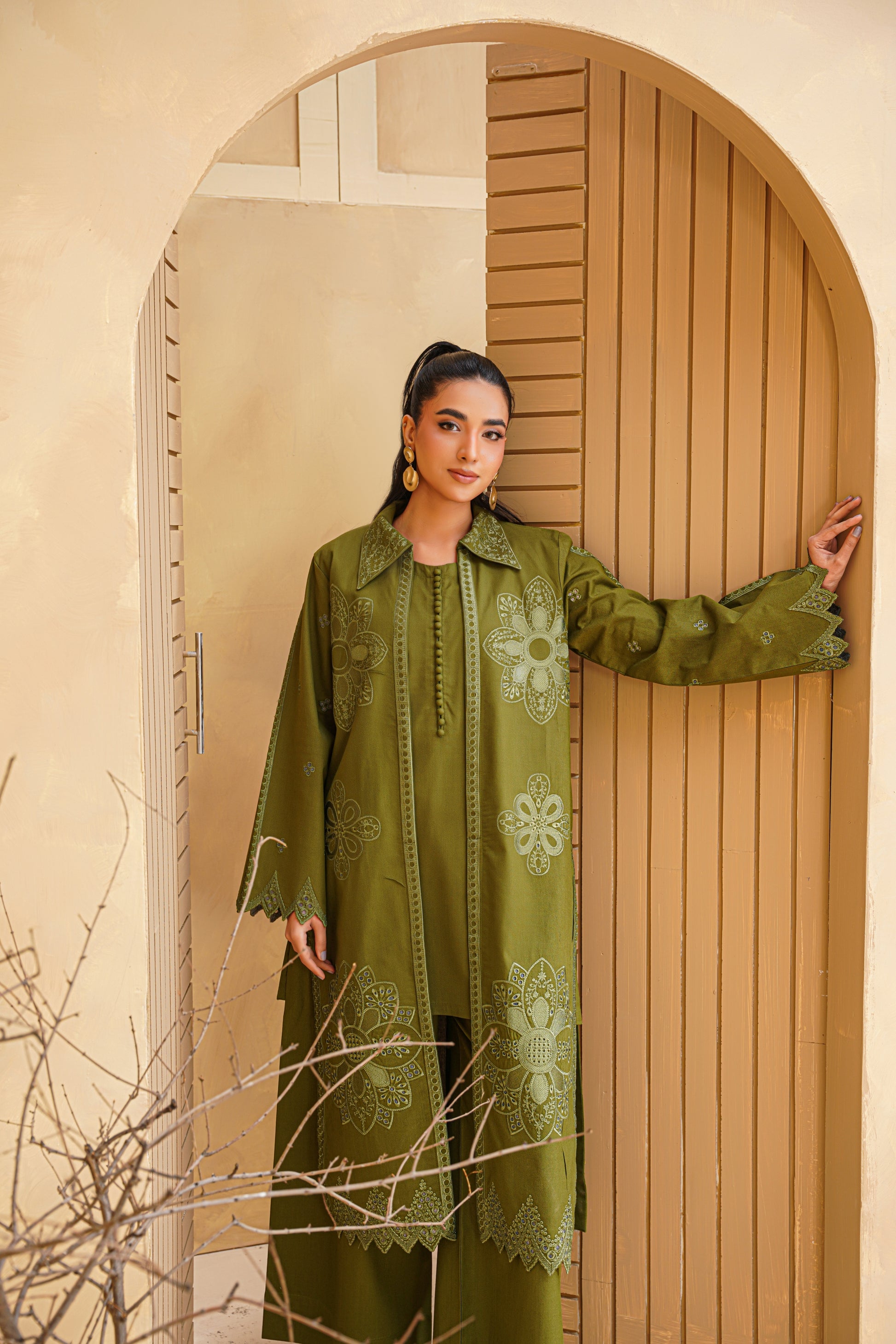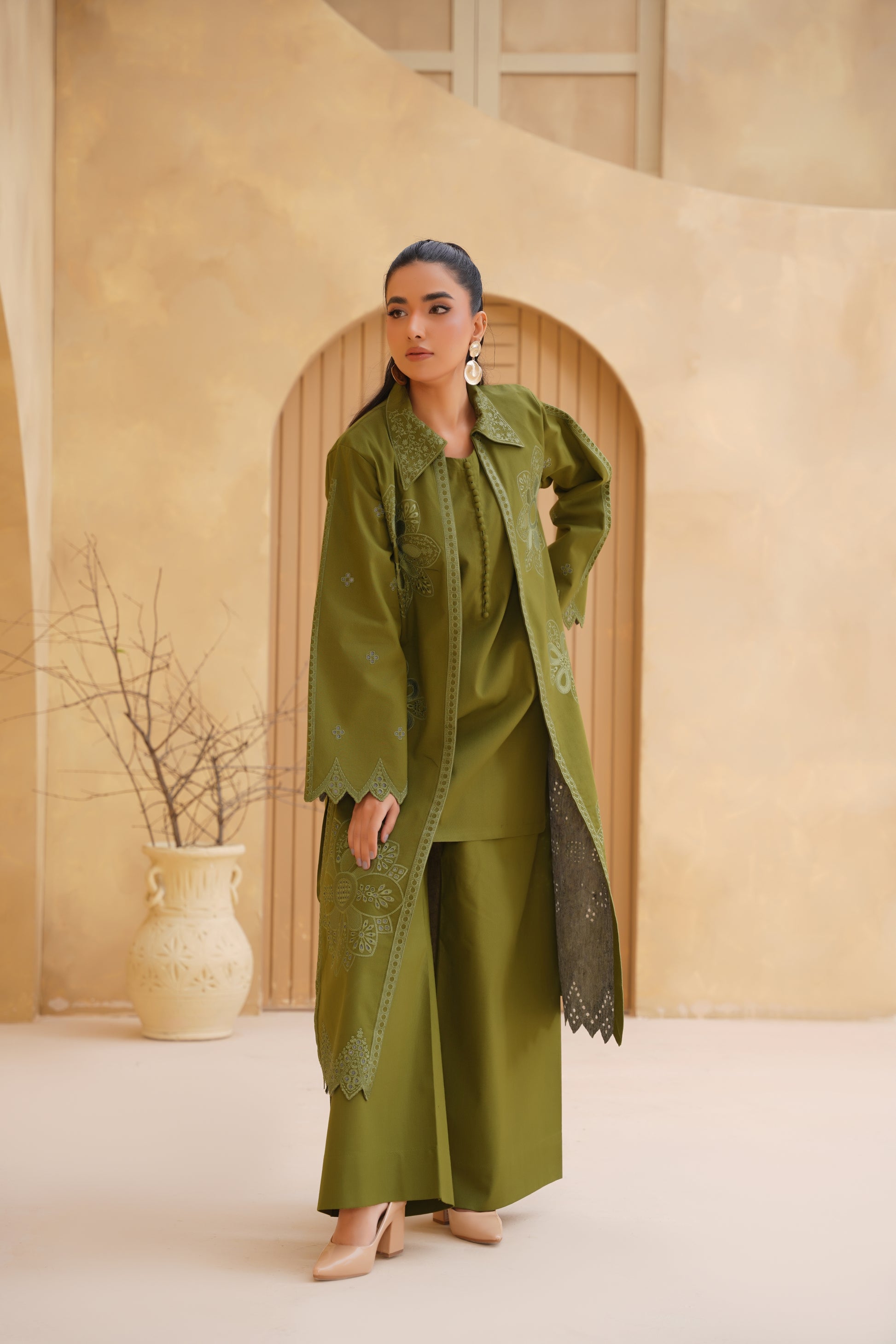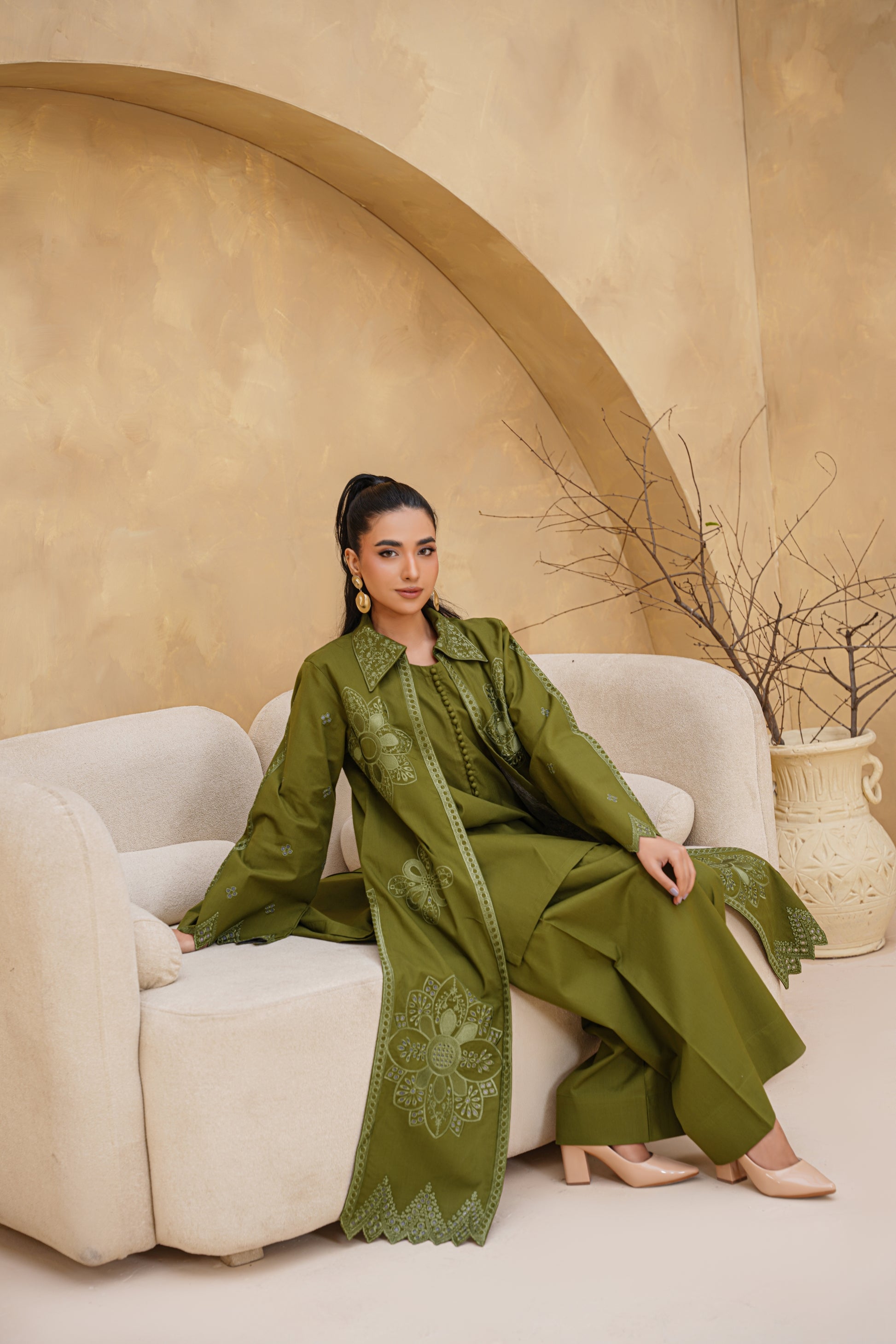 3pc Olive Bloom Dhank Suit