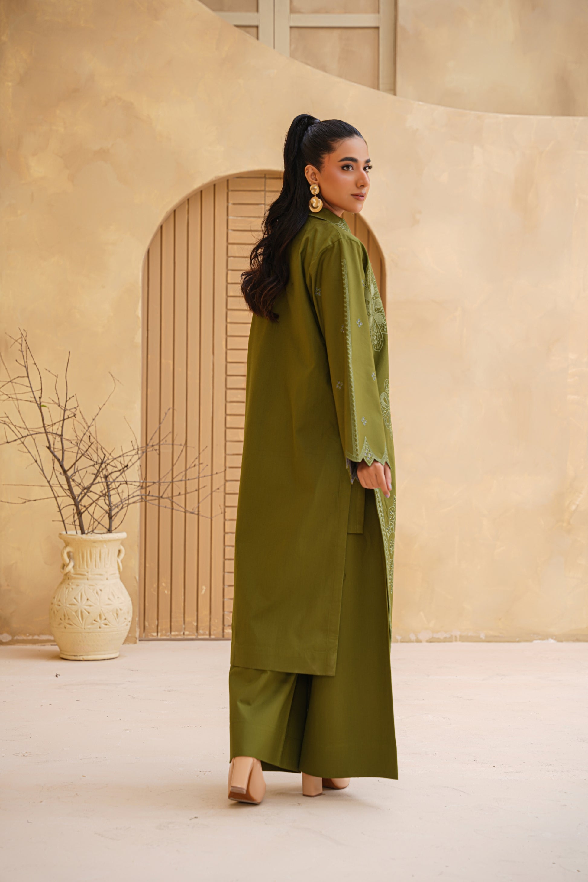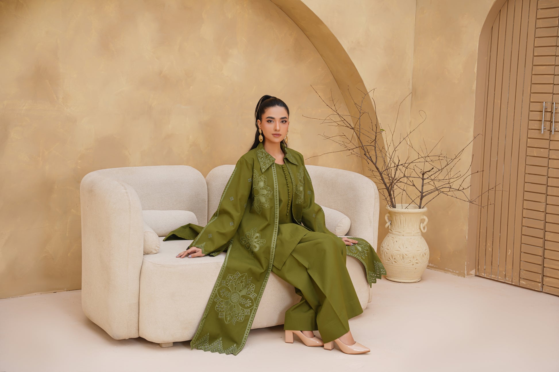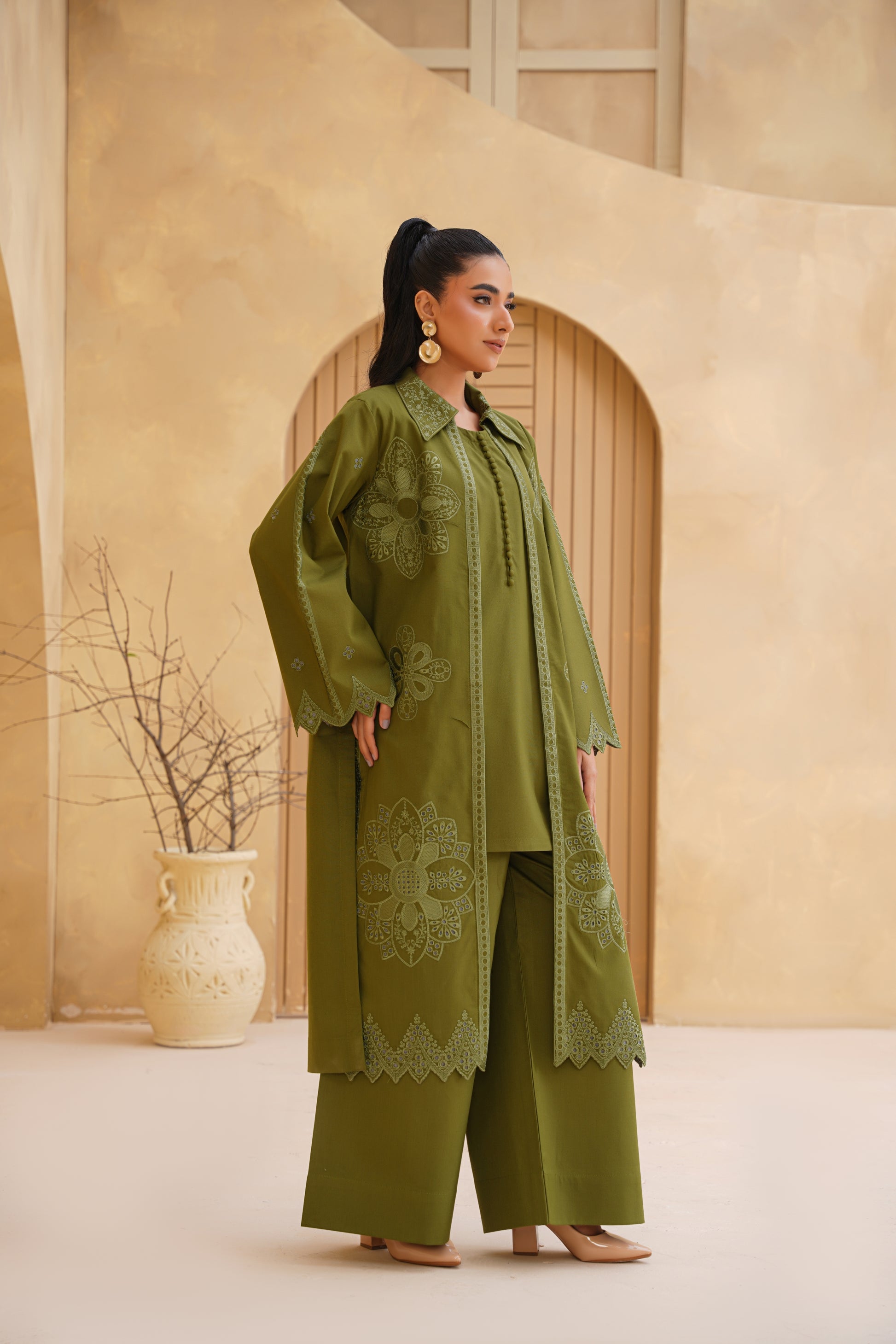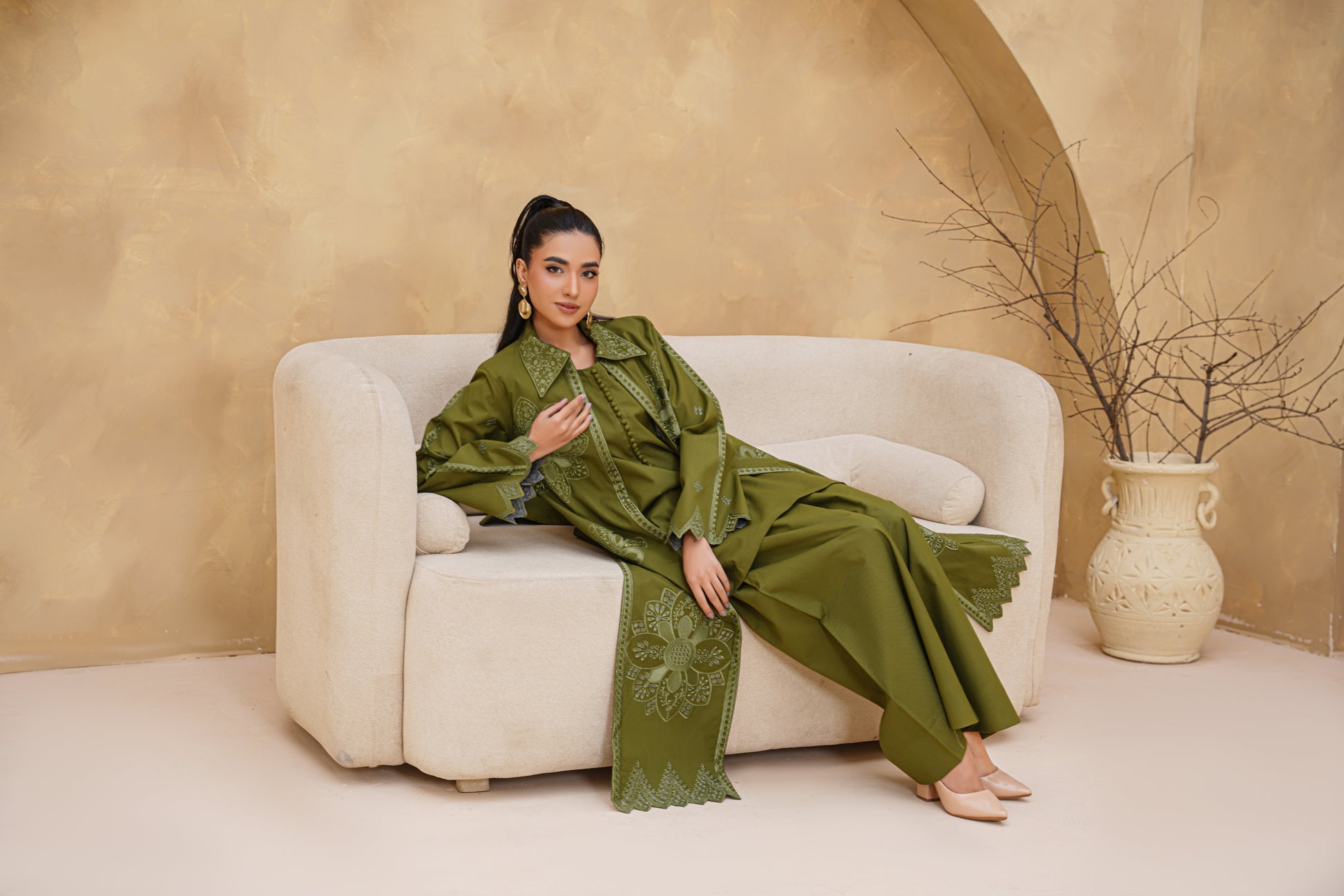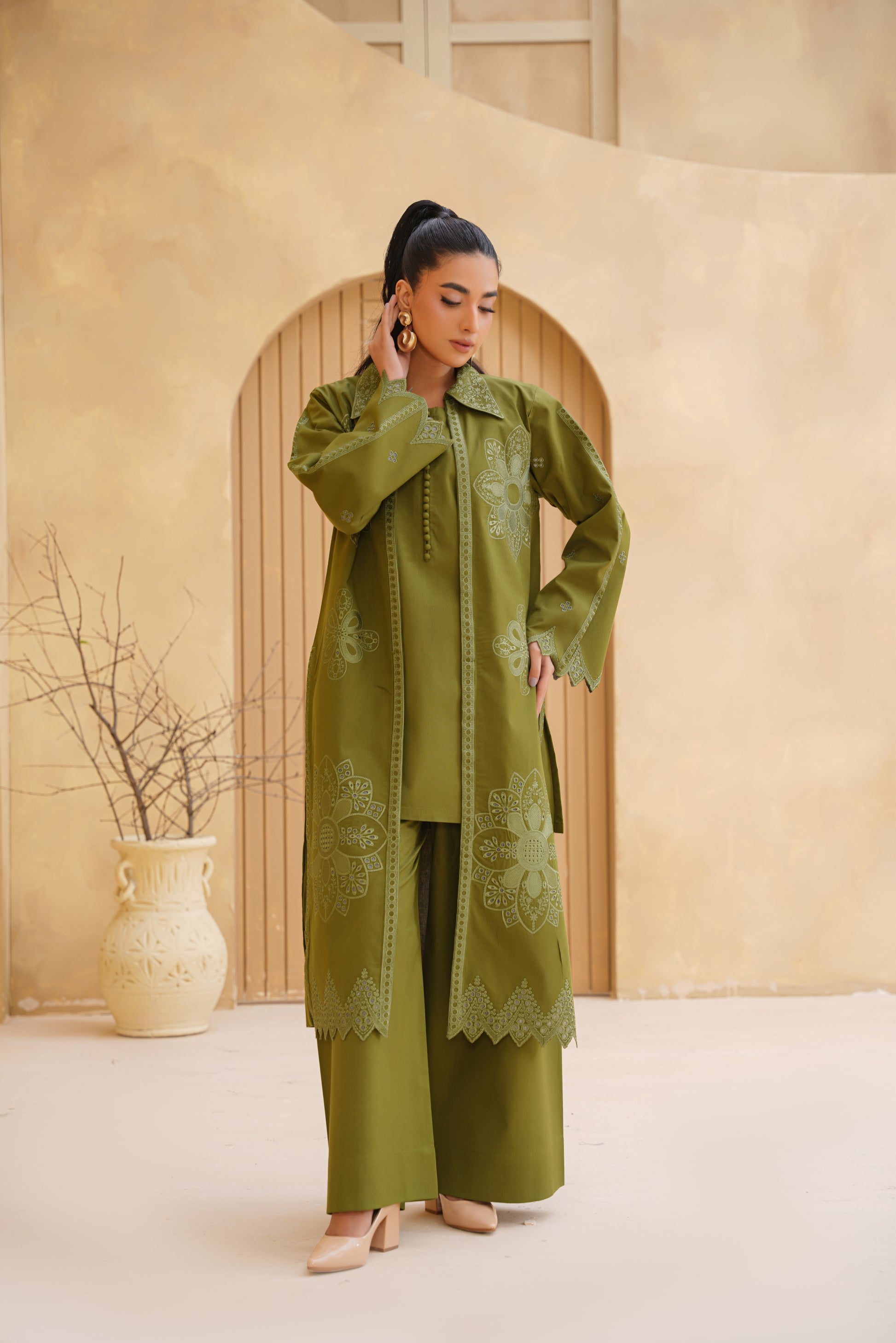 3pc Olive Bloom Dhank Suit