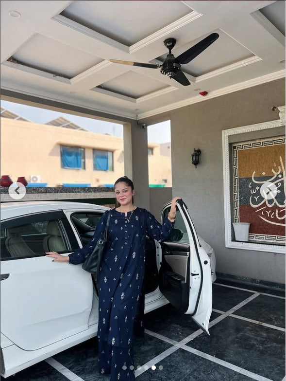 Areeba – Midnight Blue Linen Slub 2Pc Suit is a classic everyday outfit that combines elegance with comfort. Crafted from soft Linen Slub fabric, this ensemble offers breathable ease and a graceful drape — perfect for both casual outings and semi-formal gatherings. The deep midnight blue shirt features subtle printed motifs that add a refined touch, paired with matching wide-leg trousers for a relaxed yet chic look. A versatile choice for workdays or weekend plans, this outfit embodies effortless sophistication.