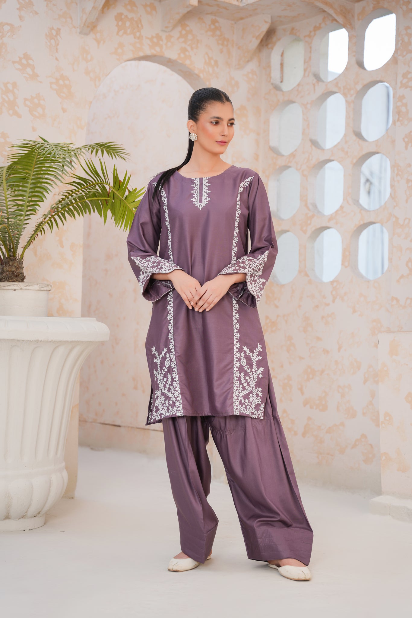 Muted purple 2Pc - embroidered pret suit