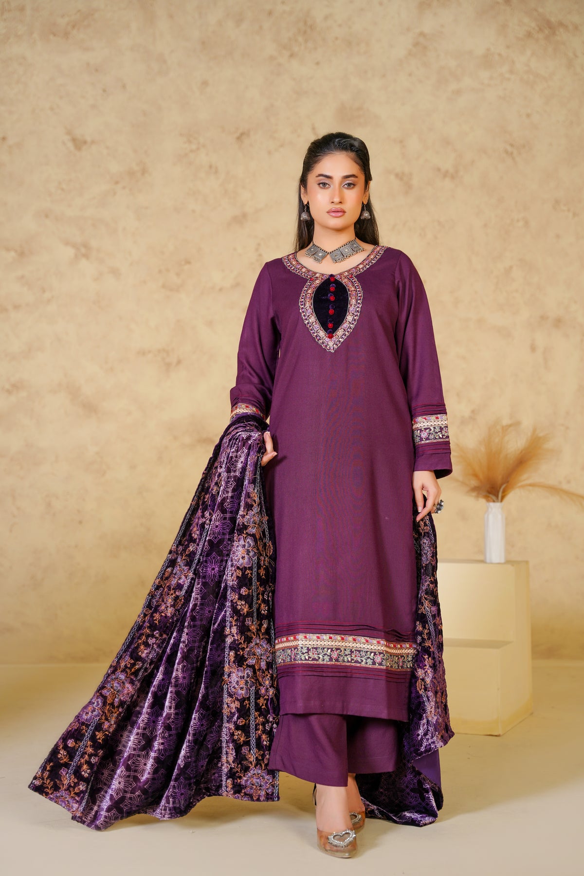 Royal Amethyst – Embroidered Dhanak Suit (Copy)