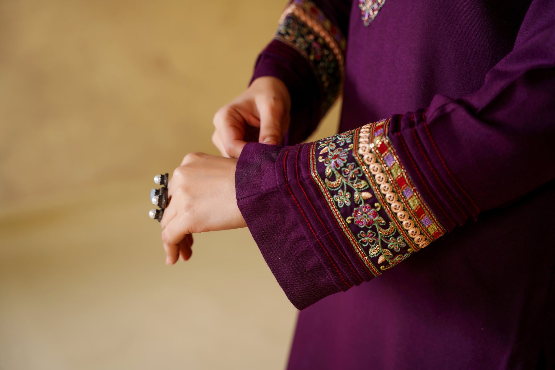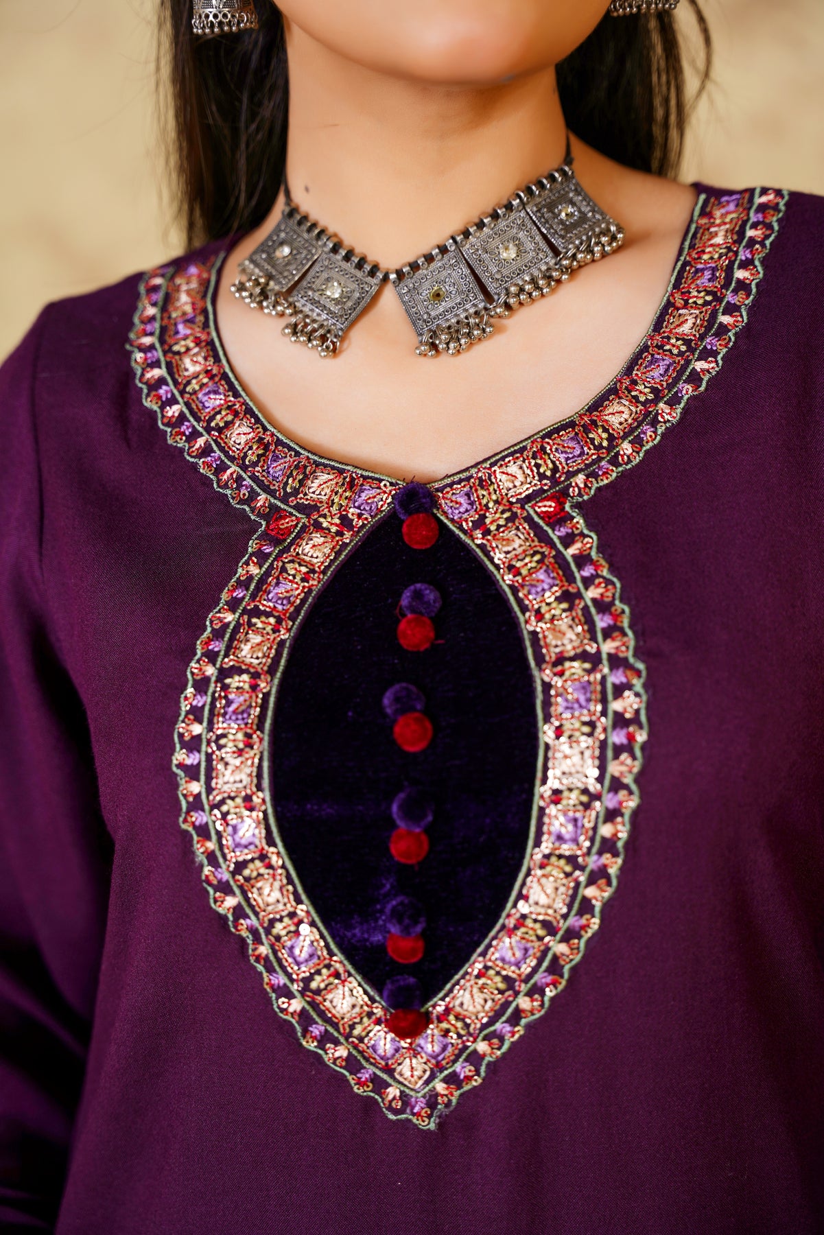 • Work: Floral embroidery with detailed neckline & sleeves